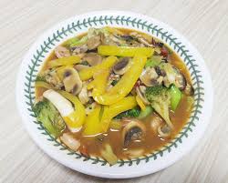 강한 화력에서 빠르게 볶아 재료의 수분과 식감을 유지하는 것이 핵심입니다. 소스는 굴소스 기반으로 진하고 고급스러운 감칠맛이 특징이며, 밥과 함께 먹어도 잘 어울리는 요리입니다.